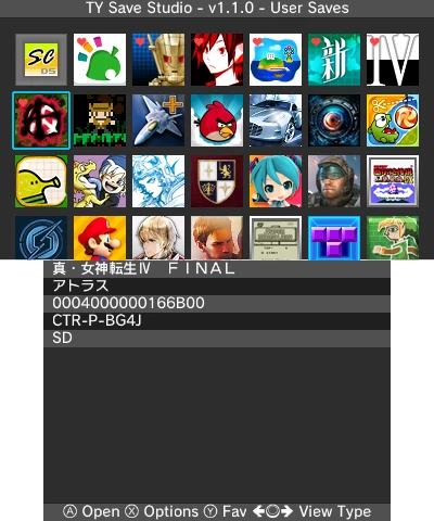 - 支持 3DS 数字版游戏和试玩版游戏的存档管理,自动过滤无存档数据的自制软件或其他应用程序